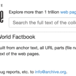 Mark Graham at the Internet Archive tells us that searchable access to more than 18,000 archived pages from the CIA World Factbook found in The Wayback Machine’s collection are now available online via this interface. Thanks Mark! Thanks Internet Archive! See Also: More Searchable Collections via The Wayback Machine