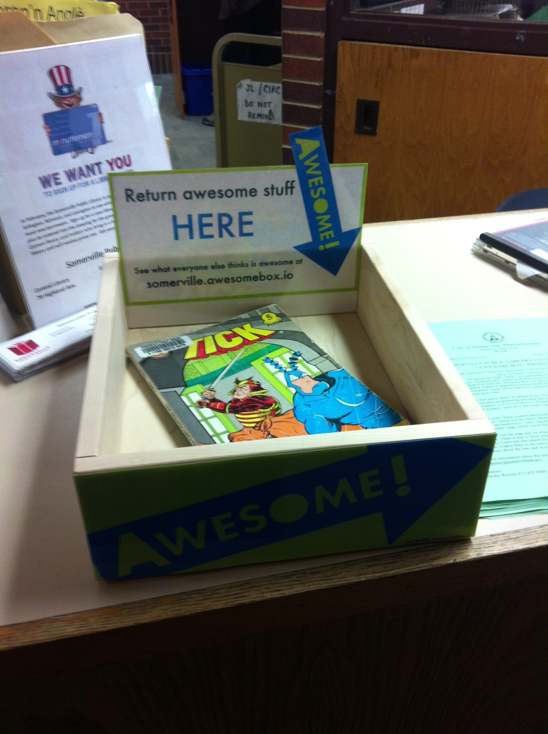 The Somerville Public Library, in a partnership with the Harvard Library Innovation Lab, launched the “Awesome Box” project at all three SPL branches in early February. This endeavor will allow patrons to give fellow users suggestions on what book/CD/DVD they found to be “awesome.”