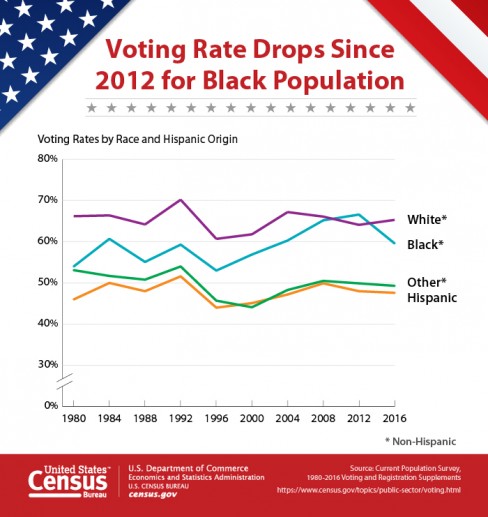 Reference: New Data: Voting Rate for the Non-Hispanic Black Population Dropped in the 2016 Presidential Election, More Millennials Vote”