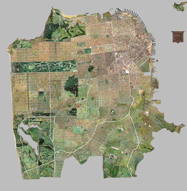 “Composite Image of all 158 pieces of the WPA San Francisco Wooden Model from 1940” (via Rumsey Collection)