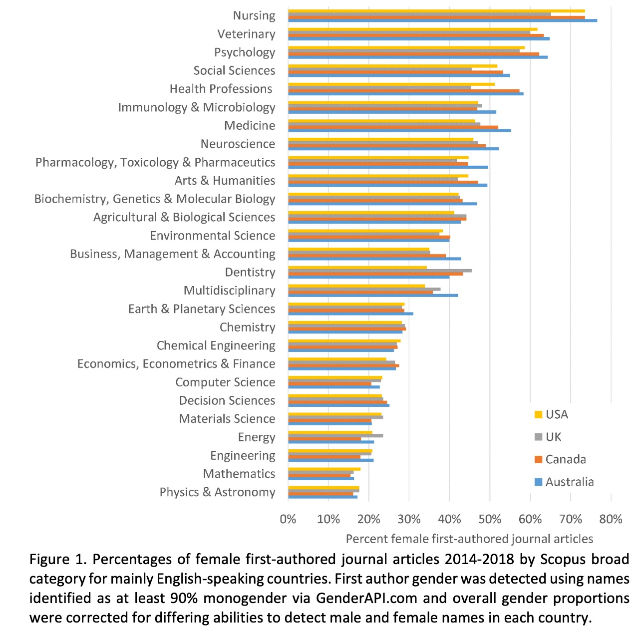 Research Article: “A Gender Equality Paradox in Academic Publishing: Countries With a Higher Proportion of Female First-Authored Journal Articles Have Larger First Author Gender Disparities Between Fields” (Preprint)