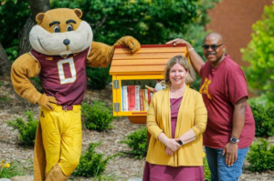 Goldy, University Librarian and Dean of Libraries, Lisa German, and Amelious Whyte Jr., Assistant Dean for Diversity, Equity and Inclusion & Public Engagement; College of Liberal Arts, Chair, Friends of the University Libraries.