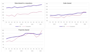 At PLOS in particular, we hope that a better understanding of how Open Science tools and practices are applied today can help us to identify barriers, understand community norms, better support best practices, and track changes over time.