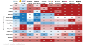 include information about the labor and data used to produce the model itself, along with what the researchers call “downstream indicators,” which have to do with how a model is used after it’s released. (For example, one question asked is: “Does the developer disclose its protocols for storing, accessing and sharing user data?”)