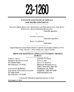 Internet Archive Files Opening Brief in Appeal of Publisher Lawsuit (Hachette et al v. Internet Archive)