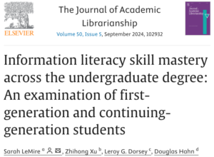 Journal Article: “Information Literacy Skill Mastery Across the Undergraduate Degree: An Examination of First-Generation and Continuing-Generation Students”