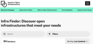 Infra Finder ensures that users can make well-informed decisions based on reliable, up-to-date details about open infrastructure solutions’ openness, community governance, interoperability, hosting options, etc.