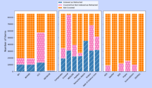 Figure 7: Overview of number of items covered, indexed as retracted, and not covered in each database Source: 10.31222/osf.io/gvfk5